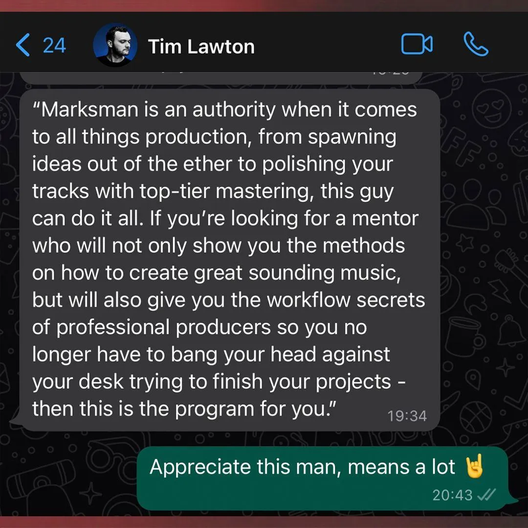 In an 4-hour video series, see how this track was made, as Marksman navigates through the creative process, sharing every insight and challenge. Experience the journey of music production, from the first note to the final cut.