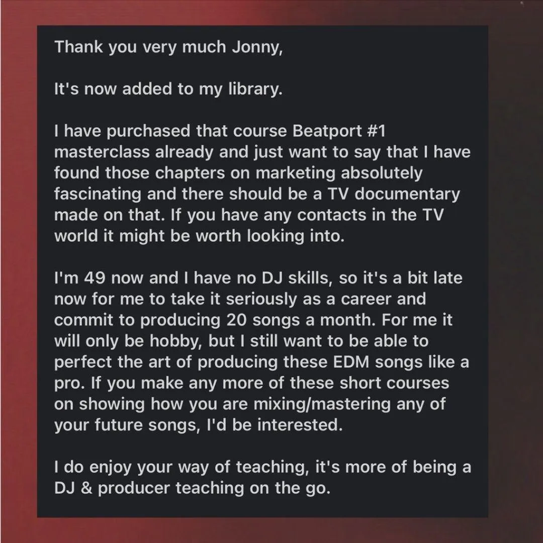 Covering everything from sound selection, layering, music theory, arrangement, mixing and much more!