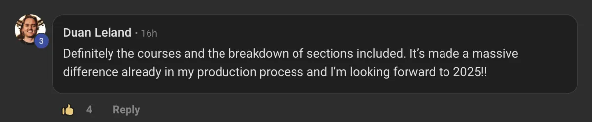 "The program gave me a really solid workflow. Now I can produce tracks really fast and I know what to do to get to the end of a track. I can do that in under 10 hours now."